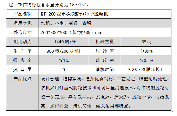 本机具有效率高、抗混杂、损失少、脱粒干净、清洁度高、操作安全、清机简便、经久耐用等显著特征。适用于从国家到地方的各级农科单位、原种场和种子基地使用。